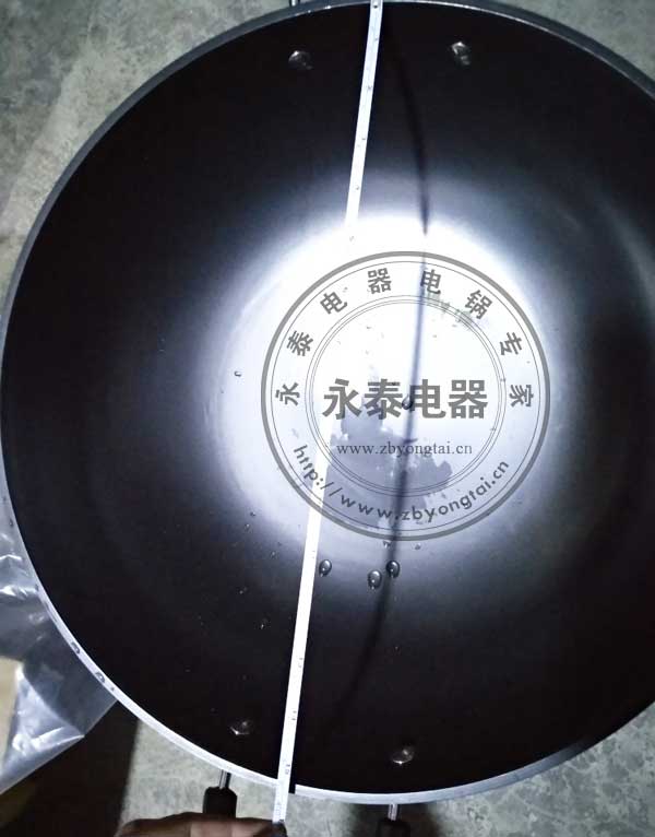 純鐵鍋,非常厚實,很有分量,很重,比普通電熱鍋重很多。我這是一口標注為34CM的鍋,實際測量外徑36厘米,內經34厘米,沒有尺寸誤差,鍋形弧度很大,炒菜等操作很方便。